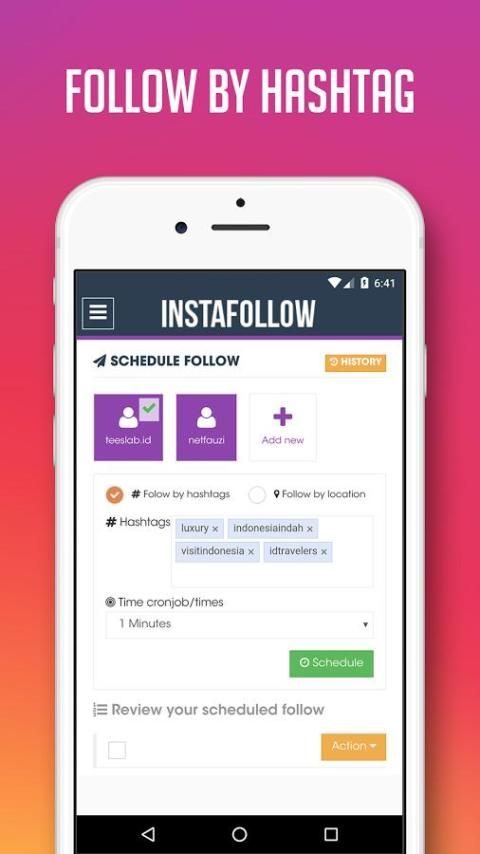 InstaFollow untuk Instagram adalah alat untuk tindak pengguna lain di instagram, alat ini baik untuk pemasaran, toko online, wisatawan, dll untuk mendapatkan pengikut. Ini cepat, akurat dan sangat intuitif.