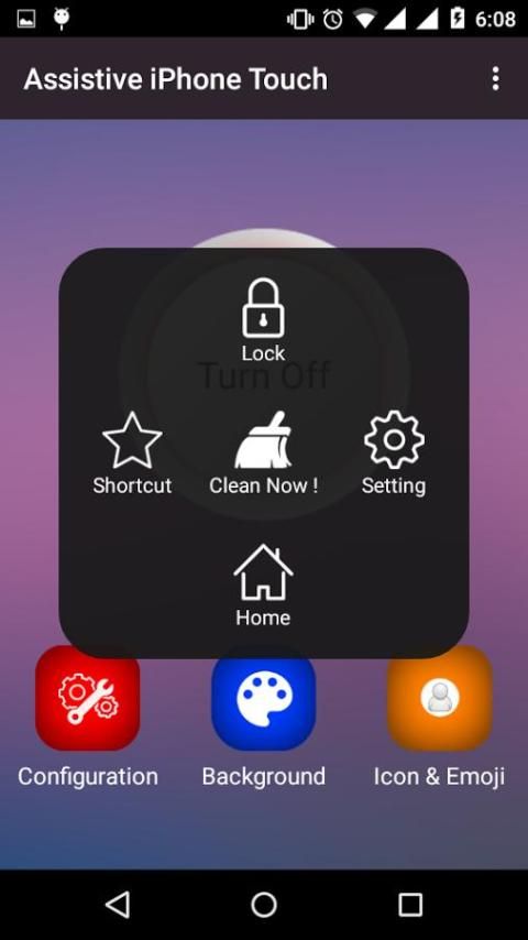 Bantu iPhone Touch untuk Android seperti ikon iPhone bantu Sentuh di mana pengguna dapat menambahkan berbagai ikon pintas cepat untuk itu.