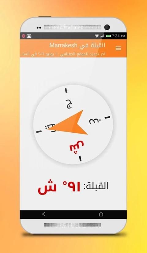 Anda juga dapat menentukan arah kiblat (arah Mekah) oleh 'arah kompas'.