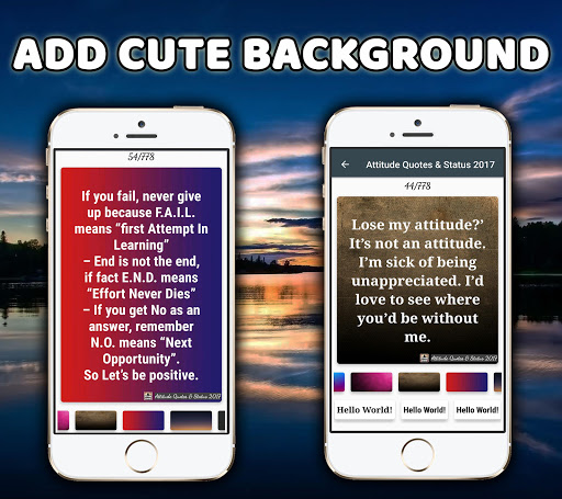Status Sikap, DP & Quotes: Status Terbaru 2018 - aplikasi meningkatkan pembaca untuk berbagi pikiran positif dan inspiratif. Ribuan mengubah sikap hidup status dan tanda kutip tersedia dalam banyak kategori. Butuh Inspirasi dalam hidup untuk melakukan sesuatu? Sekarang Anda dapat memposting apa yang menarik status aplikasi DP Status Gambar yang menyajikan sikap Anda dengan aplikasi status Sikap DP terbaru. Dapatkan kabar terbaru setiap hari apa aplikasi DP, status dari aplikasi Status Sikap DP terkini. Ini memiliki koleksi besar kutipan sikap positif untuk berbagi di facebook, whats app, twitter, instagram dan lebih banyak media sosial.