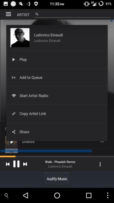 Menyimpan musik untuk online Anda Audify Music Library.