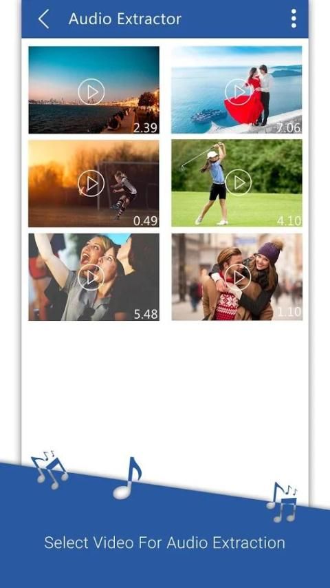 A, menguntungkan, aplikasi Audio Extractor sangat efektif menarik yang memungkinkan setiap orang untuk mengkonversi nya / video-nya untuk audio. Ini akan daftar semua lagu video dari perangkat Anda. Anda hanya memilih video yang ingin Anda ekstrak lagu audio atau file audio. Anda dapat memutar file video sebelum ekstrak.