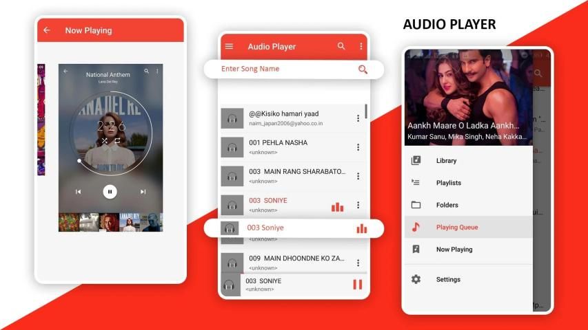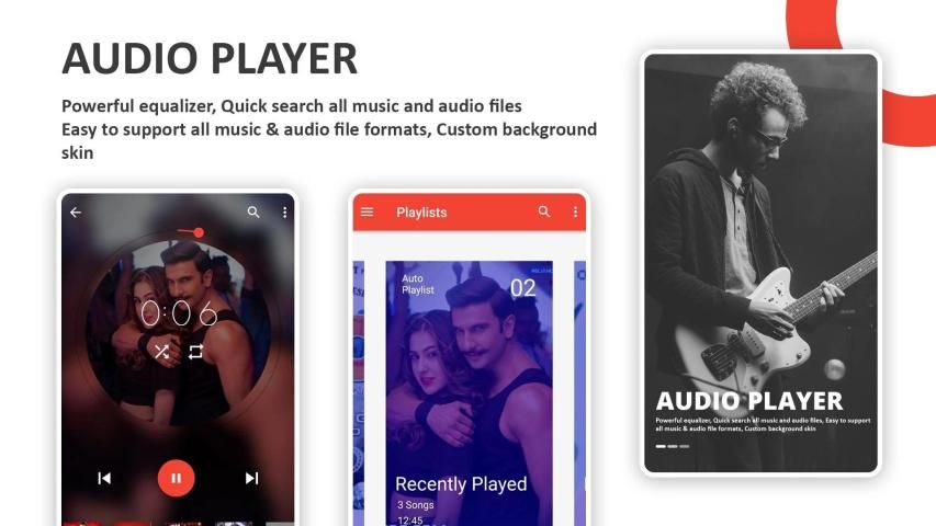 Audio Player - MP3 Music Player adalah harus memiliki pemutar musik untuk ponsel pintar. Jelajahi dan putar lagu di perangkat Anda lebih cepat dengan aplikasi yang dirancang ramah pengguna ini. Anda juga dapat memotong atau mengedit lagu mp3 menggunakan alat pemotong mp3. Anda dapat membuat atau mengedit daftar putar Anda sendiri dengan lebih mudah dengan pemutar mp3 terbaik ini.