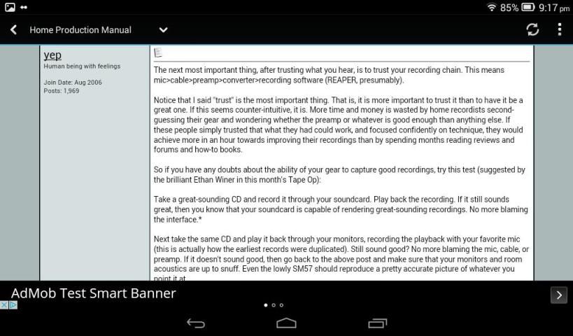 Anda juga akan menemukan akses ke thread forum audio yang telah menjadi terkenal sebagai koleksi yang komprehensif dari semua yang ada untuk tahu untuk produksi audio; tidak hanya penjelasan yang jelas dan rinci dari semua teknik tersebut, tetapi juga debat mencerahkan tentang isu-isu seperti apa yang membuat lagu yang baik, atau situasi dan ruang lingkup musik di era Internet.