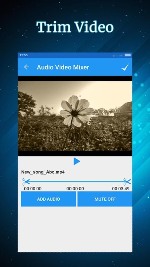 Video editor app, using this app you can add or mix your favorite audio files to video files.