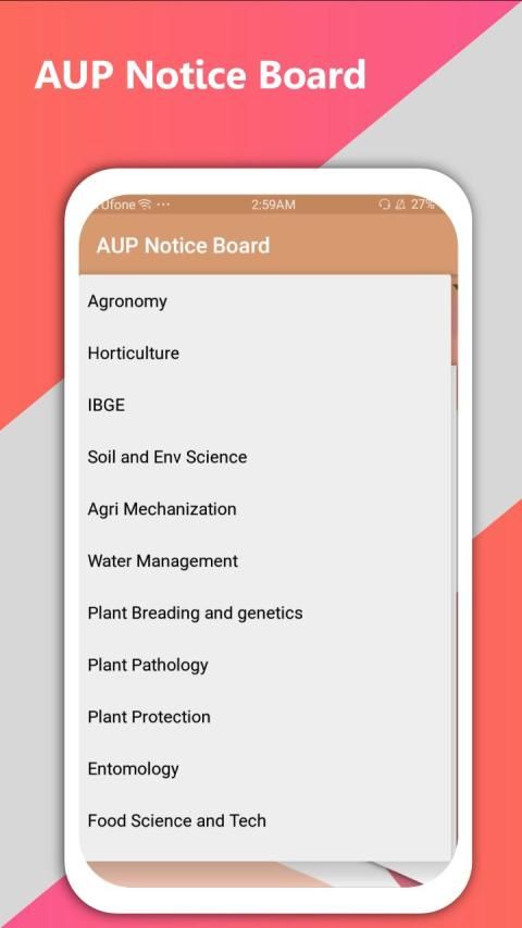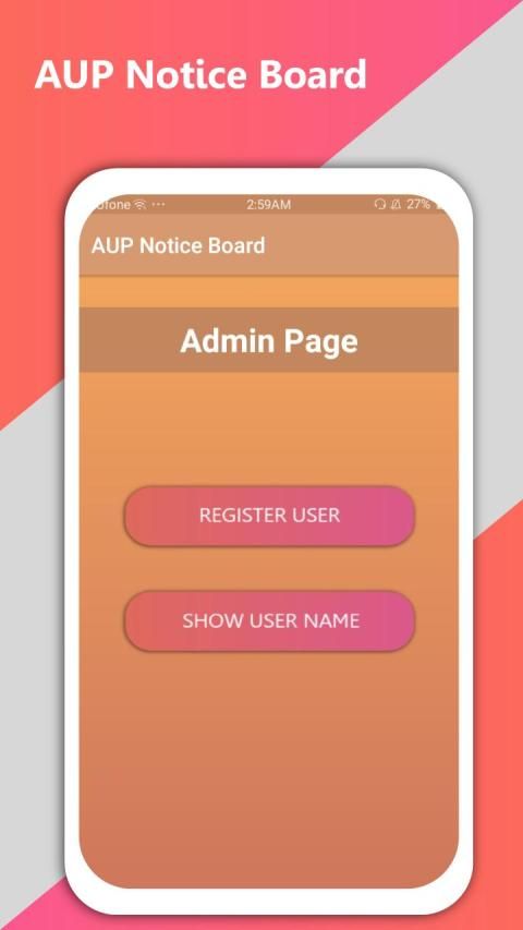 Di aplikasi ini pengguna dapat dengan mudah mengunduh notifikasi yang diberikan oleh pejabat universitas. Siswa tidak akan lagi pergi ke papan pengumuman, administrasi lagi dan lagi untuk mengganggu mereka. Secara umum aplikasi ini untuk siswa AUP dengan judul "Aup Notice Board". Tujuan dari aplikasi ini adalah untuk memberikan informasi cepat tentang hasil dan berbagai jenis notifikasi.