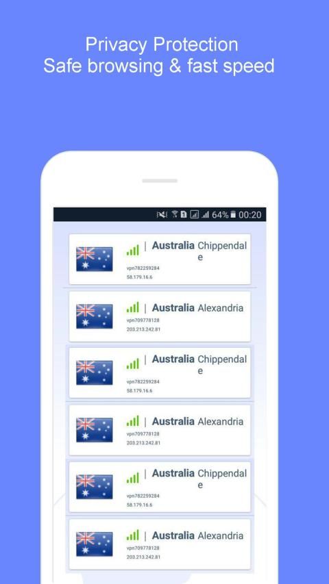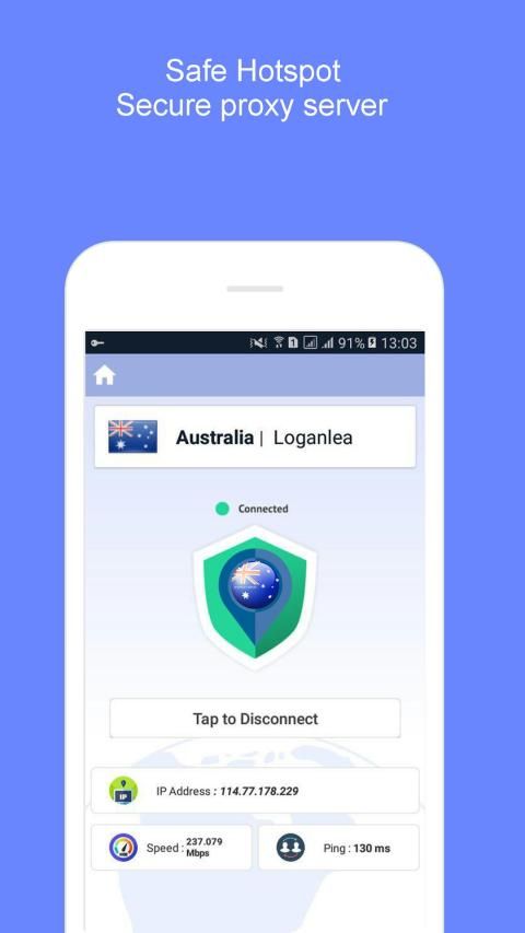 Nikmati server proxy yang aman dengan kecepatan tinggi dan koneksi stabil untuk menjelajah internet gratis di seluruh dunia dengan Australia VPN Hotspot - VPN Proxy Server.