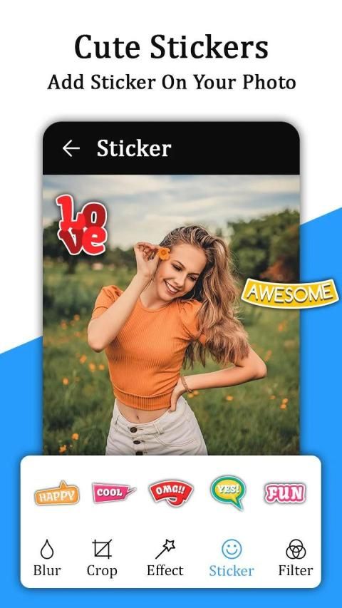 110+ stickers like Birthday stickers, love stickers, Emoji stickers, Morning stickers, Teddy stickers, etc. available in auto blur app.