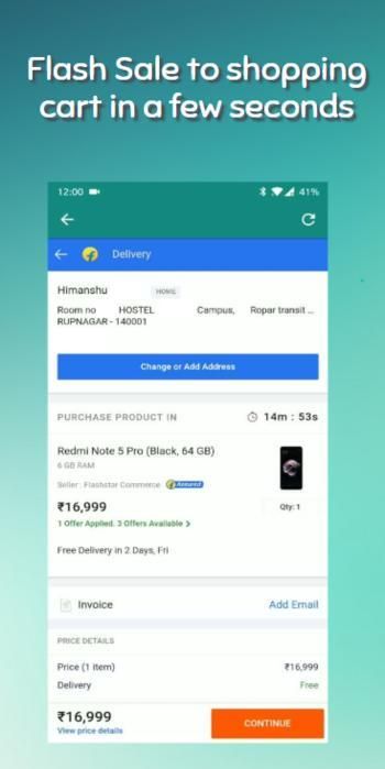 Select the address details and complete the payment to Auto buy any flash sale products.
