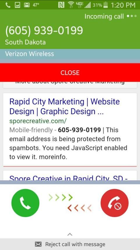 This app captures the incoming call number and compares it to your contact list. If the number is not in your contacts list it will automatically do a Google search and present the first few Google results on your incoming call window.