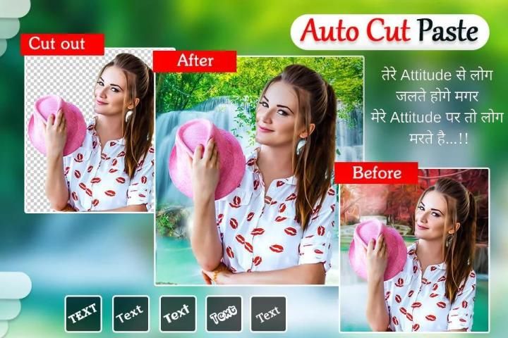 Auto Cut Paste Photo: Background Removal to erase photo background to transparent and let you edit it with different beautiful backgrounds. Cut out background remover app photo editor has so many edit options like text, stickers, photo effects and many more.