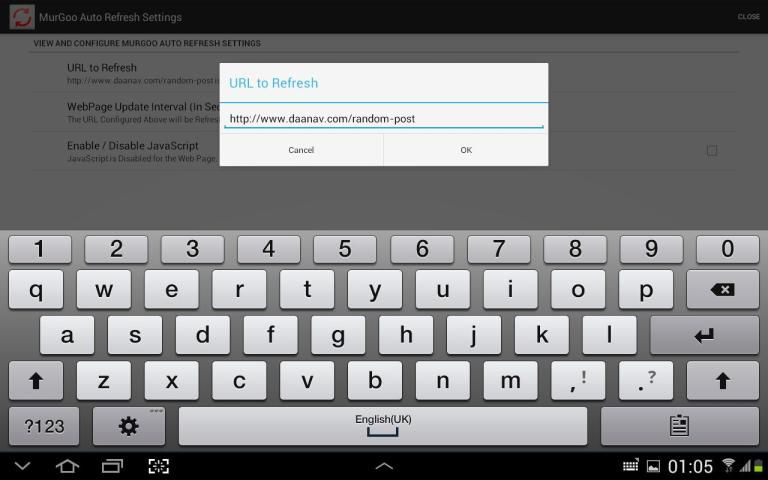 Ini Auto Segarkan untuk Android hanya membutuhkan Izin Internet untuk menampilkan dan me-refresh halaman web. Anda bahkan dapat mengubah pengaturan konfigurasi sementara refresh otomatis berjalan dan perubahan akan efektif otomatis. Anda bahkan dapat mengaktifkan / menonaktifkan java script di halaman web, mengubah interval di mana halaman web harus menyegarkan dan ofcourse url yang Anda bisa untuk refresh secara otomatis oleh Android App ini.