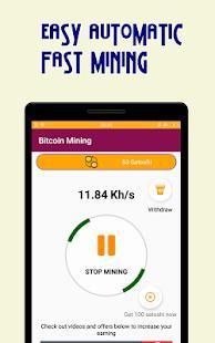 Aplikasi ini menyediakan mudah digunakan, dengan beberapa pilihan untuk mendapatkan Bitcoins oleh pertambangan secara otomatis. Anda dapat meningkatkan pertambangan dengan menyelesaikan berbagai penawaran dan peningkatan penghasilan.