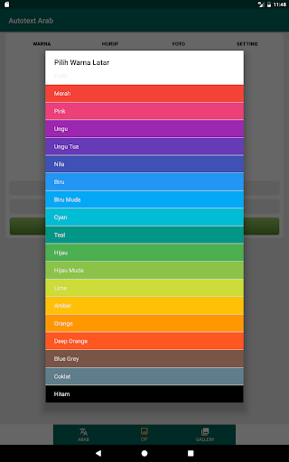 4. Apabila memiliha menu autotext bahasa arab maka cukup dengna klik pada list kata yang diiinginkan maka muncul 3 option (Copy, Share & Create DP)