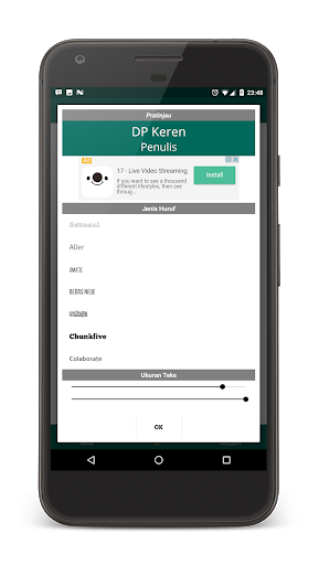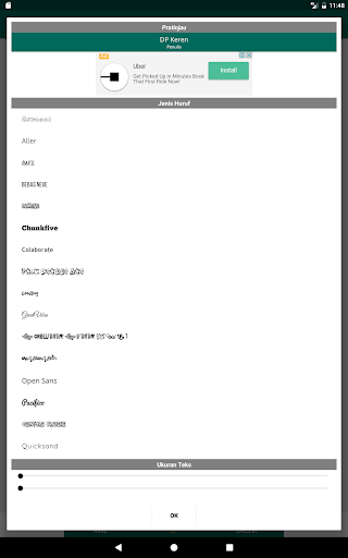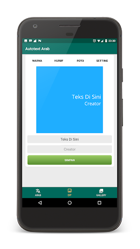 Fitur terbaru dari Aplikasi ini adalah kita dapat membuat DP dari bahasa arab yang tersedia atau hanya sekedar membuat DP dengan tulisan biasa. Fitur ini membuat Aplikasi ini berbeda dengan aplikasi lainnya.