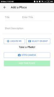 Capture your own awesome places and store it in the app. Here we can add our current location either by self-tracking or custom marking. And also we can take pictures of that beautiful place. And also we can share our place on social sites as well.