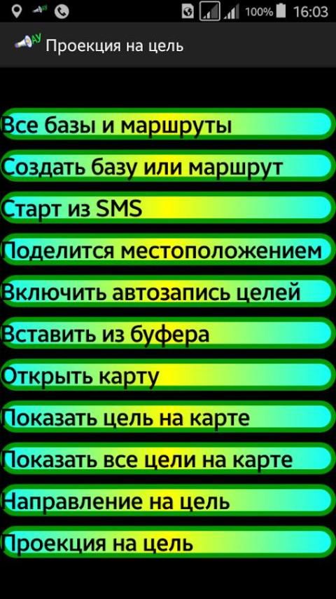 Ini mencegah Anda dari mengambil ponsel Anda keluar dari saku pada isyarat audio yang mengikuti koordinat pra-disimpan. Koordinat dapat dipilih dari built-in peta online dan lainnya diinstal pada perangkat Anda adalah peta offline dapat berbagi "geo" atau melalui clipboard. Berulang kali diuji baik di hutan dan laut dalam kabut terus menerus. Ketika diminta dengan tombol headset untuk panggilan telepon tanpa mengambil petunjuk maka jika diperlukan, beralih dari satu mode ke mode perhitungan lain dan menutup program. Ketika menerima kiat melalui synthesizer adalah mungkin untuk mengubah pengaturan lain. Program ini memiliki bahasa Inggris dan Rusia antarmuka tetapi jika diinginkan dapat menerjemahkan ke dalam bahasa lain. Anda dapat melakukan ini dengan mengedit ru_Local.txt berkas. atau us_local.txt dan menyimpannya di bawah nama lain ?? _ local.txt.