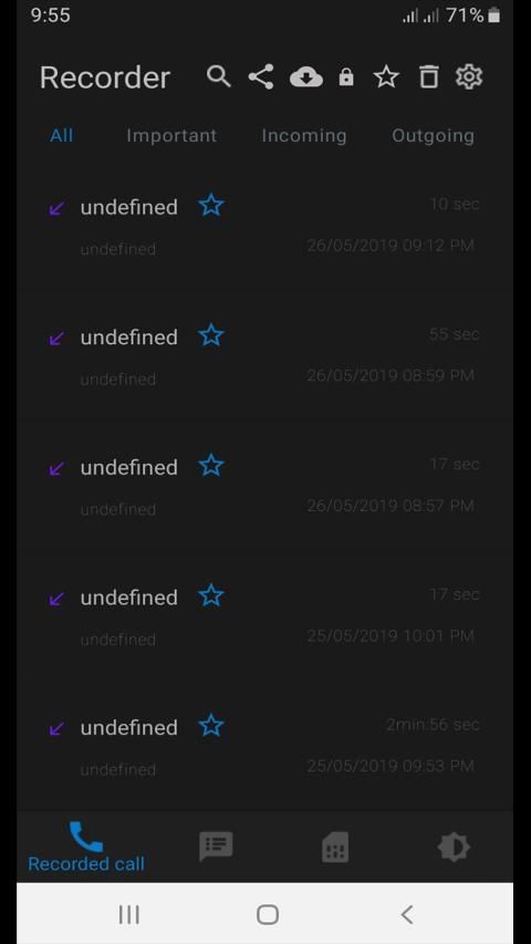 • Categorize recorded calls according to all calls , incoming calls , outgoing calls , important calls .