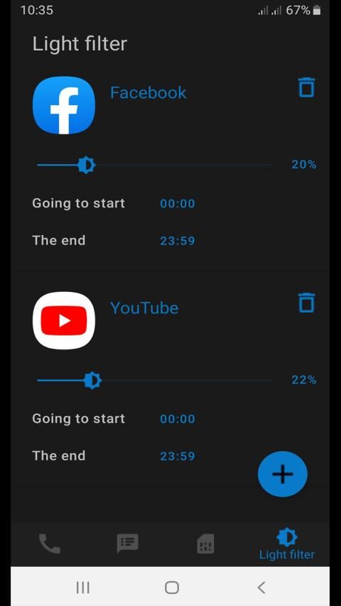 • Add any application to the blue light filter and the ability to specify the time the blue light filter is going to start and end with the chosen program ( example : the blue light filter begins when user open youtube and it end when user close the youtube ) .