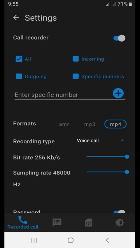 • Record the calls using different formats ( mp3 , mp4 , amr , etc ) .