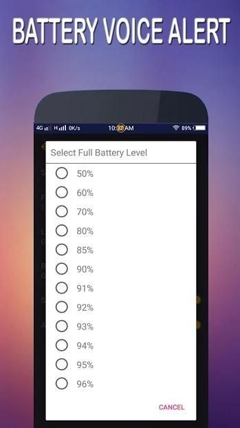 : - Pemberitahuan jika level baterai jatuh di bawah batas