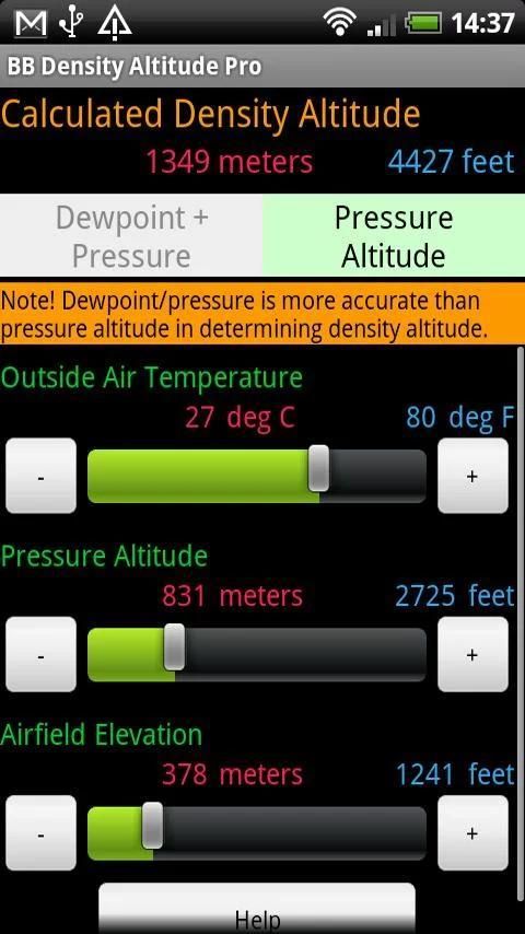 Keduanya mudah digunakan dan sangat akurat, Bagelboy Software ketinggian kepadatan kalkulator menawarkan 2 metode penentuan densitas ketinggian menggunakan setiap kombinasi bahasa Inggris dan Metric unit.
