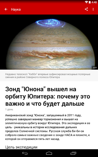 The app is simple to use, with stories in Russian arranged into categories covering Latest News, Russia, Economics, Science, Society, UK, Sports, Video and Audio.