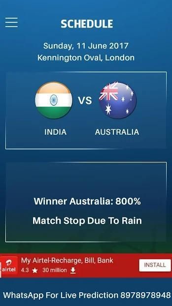 Cricket Prediction Live is a live predictor where all you have to do is predict who is going to win the match. On the basis of pitch reports, previous performance of the team, weather etc.