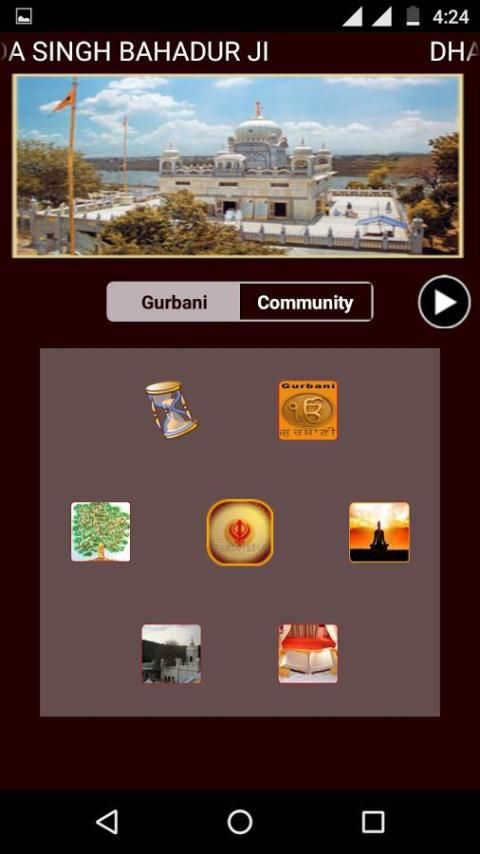 Aplikasi ini memiliki dua bagian mis Gurbani dan Komunitas