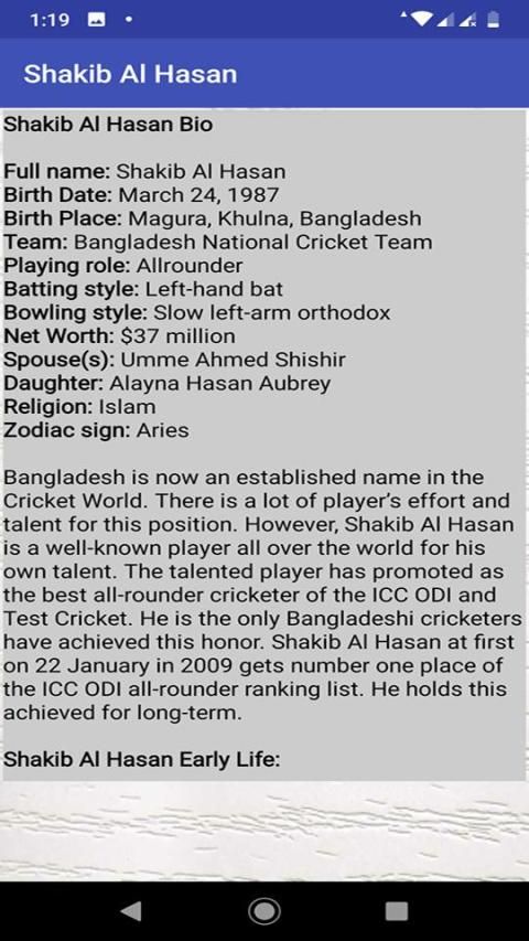Aplikasi ini akan berisi Biografi dan gaya hidup kriket bangladesh.