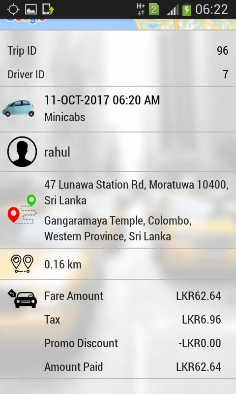 • Google Navigation: Luncurkan aplikasi navigasi dalam aplikasi untuk mendapatkan arah ke pickup dan tujuan lokasi.