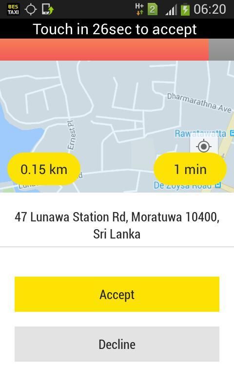 • MENERIMA / TOLAK Status perjalanan: Driver diperbolehkan untuk menerima / menolak perjalanan dalam 30 detik dan memperbarui penumpang ketika ia / dia telah menerima perjalanan, mencapai pada titik pickup, dan menjatuhkan penumpang.