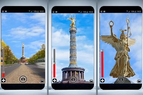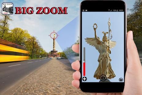 This App "BIG ZOOM CAMERA 4K" is very stable and lets you take photos with really high quality and with 100% zoom usage! Use optical and digital zoom! It can give you even x100 zoom! This app " BIG ZOOM CAMERA 4K " can also be used as monocular,binoculars,spyglass,fieldglass,binos,camescope or magnifier.