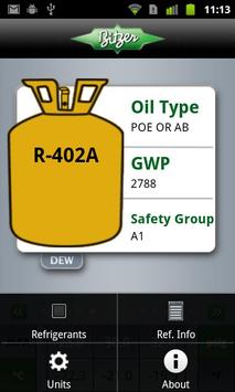 Additional information can also be found for each refrigerant by touching the "Ref. Info" menu button.