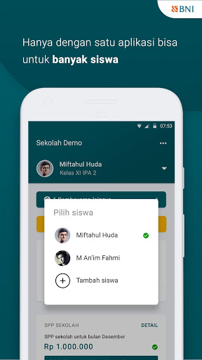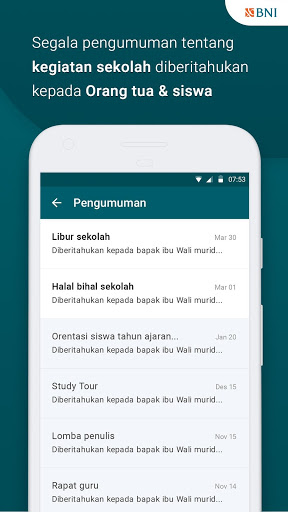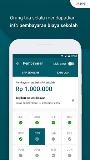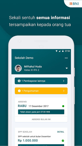 Orang tua dapat memperoleh informasi jadwal pembayaran biaya sekolah & historical pembayaran.