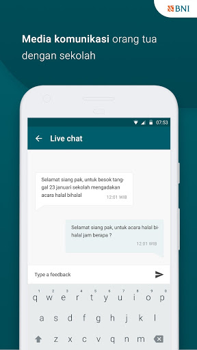Dilengkapi dengan fitur live chat yang dapat menghubungkan orangtua dengan sekolah maupun dengan wali kelas siswa.
