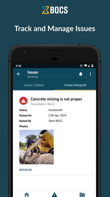 - Allows team members to raise issues/constraints from site through their mobile app