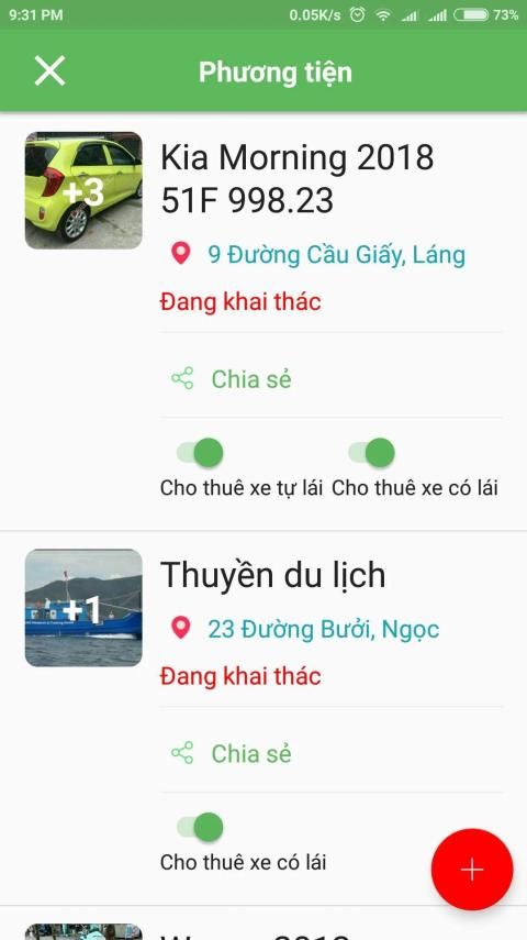 - Chế độ làm việc: cải thiện thu nhập bằng cách đăng thông tin cho thuê phương tiện đi lại (xe ô tô, xe máy, xe đạp, xe chở hàng, xe ba gác, tàu thuyền) ở hai chế độ xe có lái và tự lái. Khách hàng tìm kiếm và thuê xe ngay trong khu vực bạn di chuyển hằng ngày.