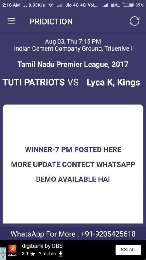 Kami adalah perusahaan Prediksi Pertandingan, bekerja untuk semua game. Aplikasi ini akan membantu Anda untuk memprediksi permainan saat kriket.