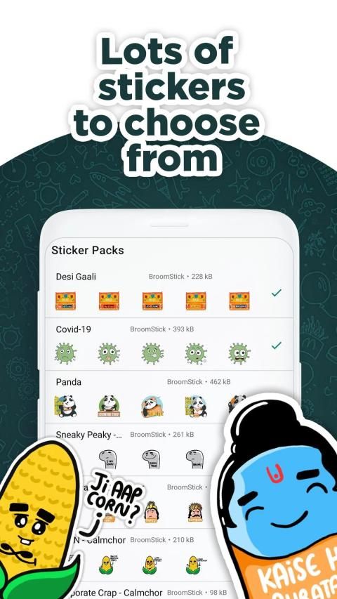 ● You can click any pack in the stickers list and start sending BS STICKERS | WhatsApp Stickers to your friends and family.