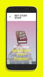 BSIT Study Study is an android app developed by Tech Mateen. It directs to an online source (www.bsitstudystuff.weebly.com) which provides contents of subjects related to Information Technology, Electronics, and other related fields.
