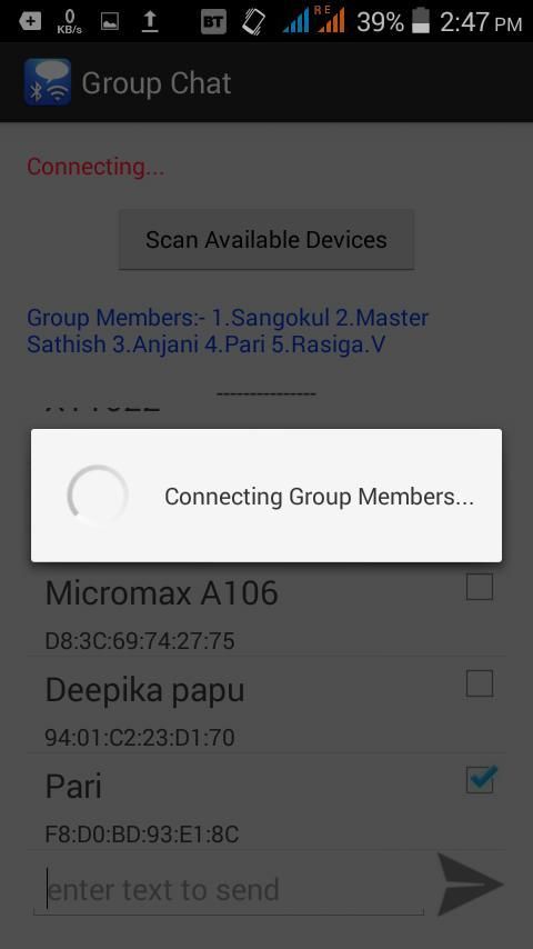 Berkomunikasi dalam sekelompok teman-teman di wilayah dekat menggunakan Bluetooth. Ini tidak akan mengkonsumsi konektivitas data dan karya tanpa server.