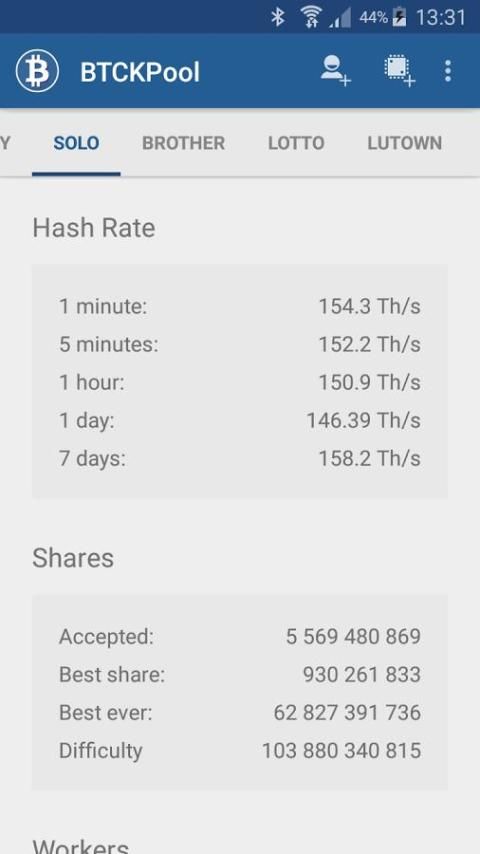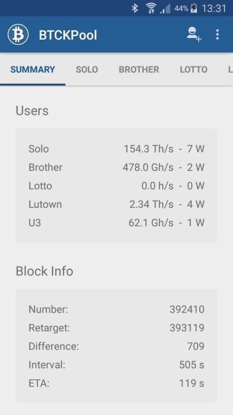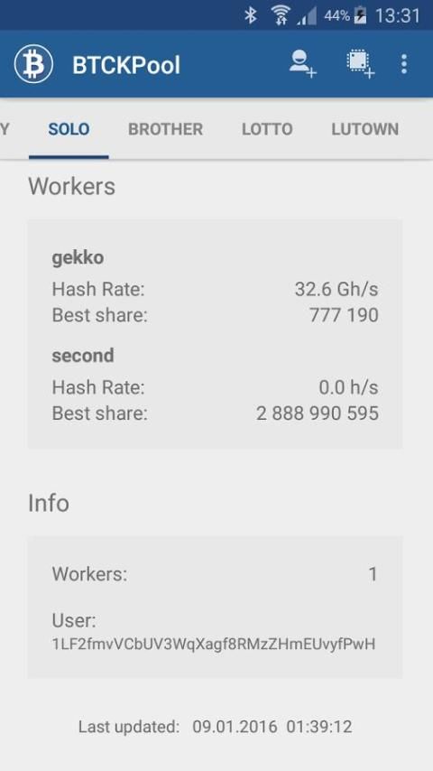 Melacak semua ckpool pengguna dan pekerja statistik Anda dalam satu aplikasi. Ini adalah aplikasi yang sempurna untuk memantau semua Anda Bitcoin Solo Lotto Berjalan ;-)