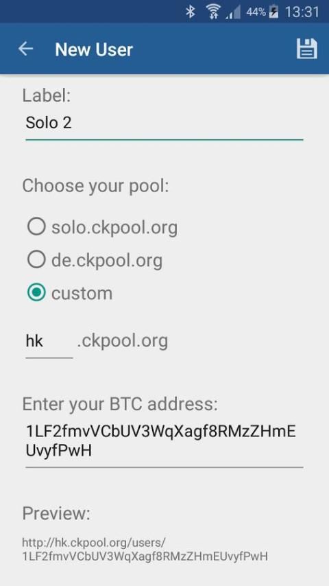 - Tambahkan pengguna atau pekerja dengan menyisipkan di ckpool stats URL