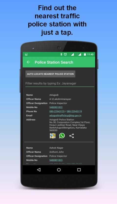 Aplikasi Android untuk pengguna Bangalore Jalan bekerjasama dengan Polisi Lalu Lintas Bangalore.