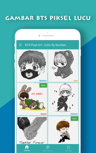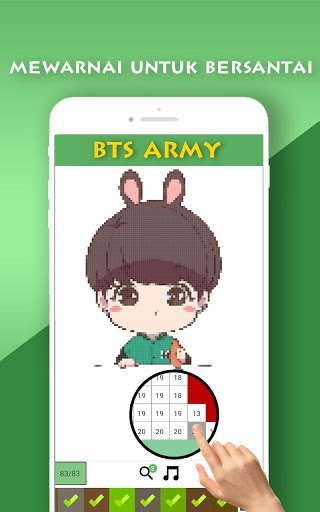 BTS Pixel Art - Color By Number, buku mewarnai yang sama sekali baru untuk orang dewasa, anak-anak dan khusus untuk penggemar BTS, memungkinkan Anda untuk melukis ratusan seni pixel yang indah, menyenangkan dan imut dengan angka-angka tentang bintang K-POP. 200 karya seni yang indah, 5 gambar menantang HD yang diberikan kepada Anda untuk diwarnai dengan angka, semuanya gratis!