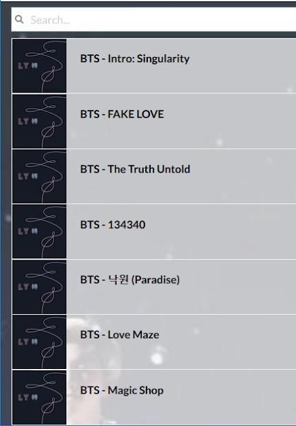 We made this music streaming for all lovers of the songs and lyrics of a favorite singer BTS. In order to get latest mp3 songs and music lyrics in this application can be updated automatically, you should always connect to the internet. Please download and instal BTS mp3 lyrics, this is a free application and we wish you happy and entertained.