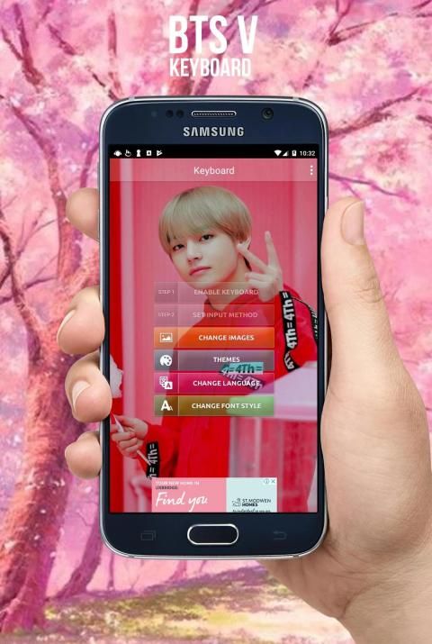 BTS V Keyboard provides 7 beautiful images and attractive from v to decorate and make your keyboard beautfiul.