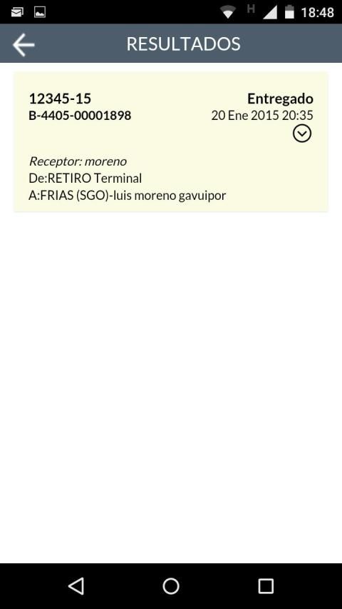 - Detalle del historial de eventos y estadíos por los que transitó el paquete enviado