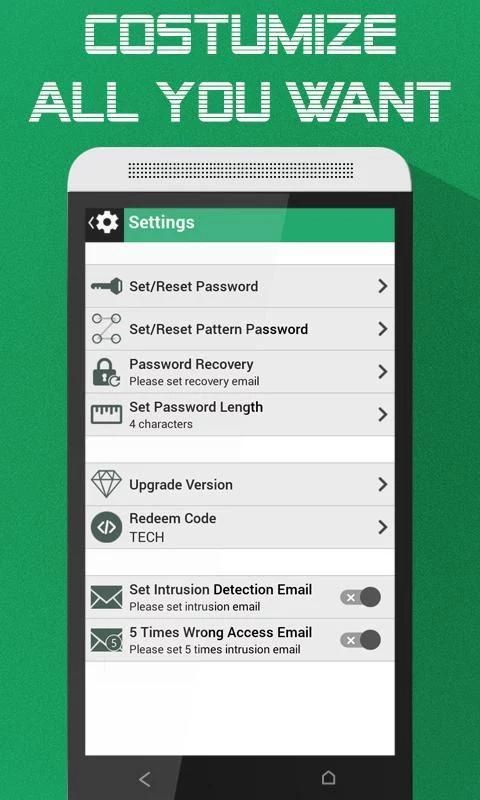 ★ EMAIL NOTIFICATION: Notifies through email whoever tries to access what you have locked